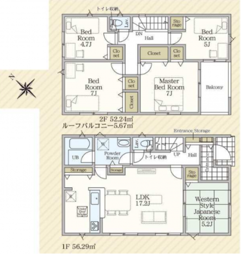 - システムキッチン、カウンターキッチン、洗浄便座、浴室乾燥機、ルーフバルコニー、モニタ付インターホン、床下収納、トイレ2箇所