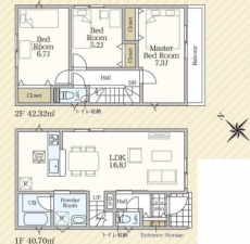 - システムキッチン、カウンターキッチン、洗浄便座、浴室乾燥機、ルーフバルコニー、モニタ付インターホン、床下収納、トイレ2箇所