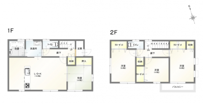 - IHクッキングヒーター、オール電化、シャンプードレッサー、洗浄便座、追い焚き、モニタ付インターホン、駐車場2台分、トイレ2箇所