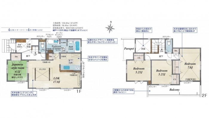 - 駐車場3台分、吹抜・折上天井・勾配天井